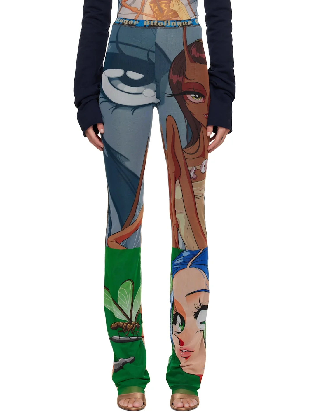 Stretch recycled polyester mesh lounge pants. · Graphics printed throughout · Logo-printed elasticized waistband · Raw edge at cuffs · Full stretch jersey lining Featuring artwork from Julien Ceccaldi. Supplier color: Julien Ceccaldi Body: 90% recycled polyester, 10% elastane. Lining: 84% polyamide, 16% elastane. Made in Greece 252016F087005