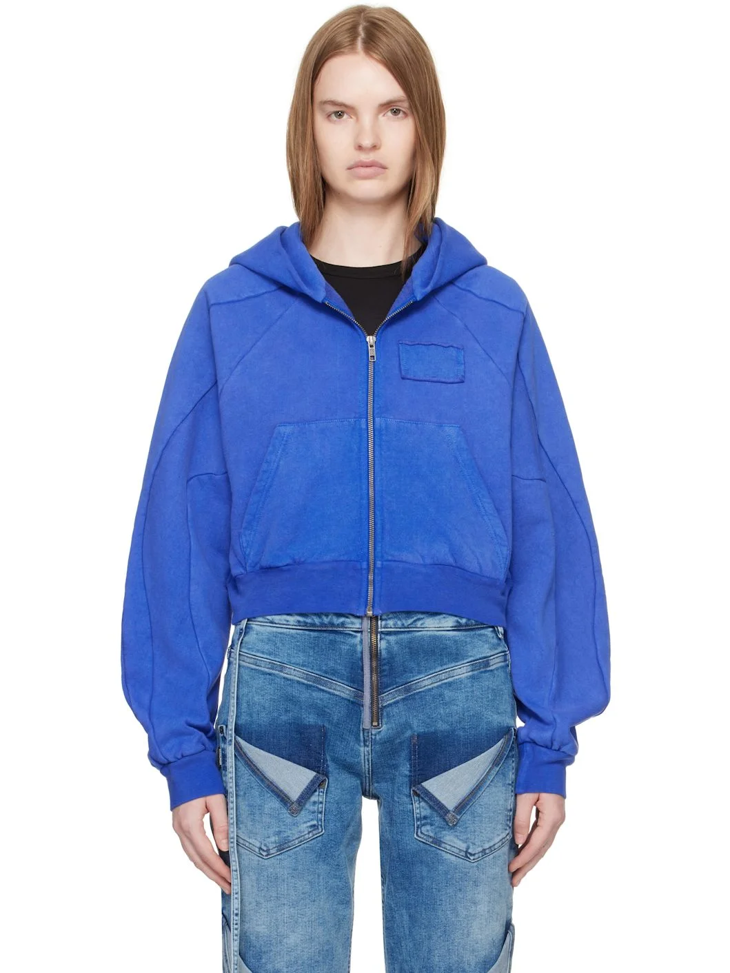Organic cotton fleece hoodie. · Zip closure · Patch with raw edge at chest · Patch pockets · Rib-knit cropped hem and cuffs · Raglan sleeves · Graphic printed at back Supplier color: Surf blue 100% cotton. Made in Greece 252016F097000