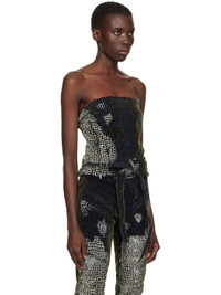 Handcrafted stretch denim tank top. Graphic pattern flocked throughout. · Paneled construction · Straight neck · Zip vent at front hem · Belt loops and detachable cinch belt at hem · Cutout and extended strap at side seam · Zip closure at side seam · Rubberized logo patch at back · Logo-engraved copper-tone hardware Supplier color: Velvet print 92% cotton, 5.5% polyester, 2.5% elastane. Made in Turkey 241016F111018