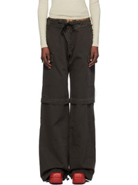Cotton twill cargo pants. Frayed edges and inverted seams throughout. · Belt loops · Drawstring at waistband, knees, and cuffs · Four-pocket styling · Offset zip-fly · Flap pockets at front · Rubberized logo patch at back waistband Supplier color: Dark brown canvas 100% cotton. Made in Greece 242016F087003