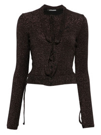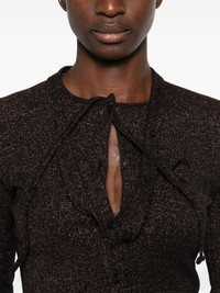 double-closure ribbed cardigan Highlights - Black - Ribbed knit - Tie fastening - Long sleeves - High neck - Side tie detail Imported Composition Fabric 100% SIZE & FIT Model measurements Height 5 ft 10 in(1.77 m) Bust/Chest 32.28 in(82 cm) Hips 35.03 in(89 cm) Waist 25.19 in(64 cm)