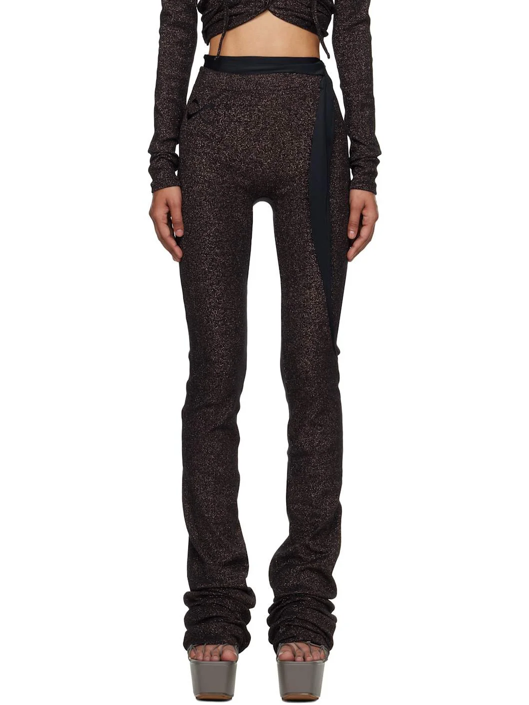 Rib-knit stretch cotton-blend lounge pants. · Metallic thread detailing throughout · Jersey trim at elasticized waistband and outseam · Logo embroidered at front Supplier color: Black/Bronze glitter 78% cotton, 10% lurex, 9% polyamide, 3% elastane. Made in Greece 252016F086001