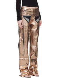 Coated non-stretch denim jeans. · Belt loops · Four-pocket styling · Zip closure · Strap at outseam · Logo patch at back waistband Supplier color: Black/Bronze paint 76% cotton, 20% recycled cotton, 3% polyester, 1% elastane. Made in Greece 252016F069001