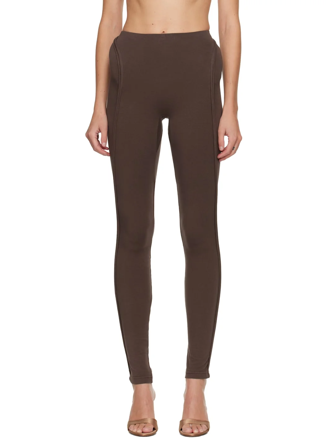 Stretch organic cotton jersey leggings. · Elasticized waistband · Padded hips · Rolled edge trim at outseams · Logo and text printed at back Supplier color: Dark brown wash Body: 97% organic cotton, 3% elastane. Fill: 100% polyester. Made in Greece 252016F085002