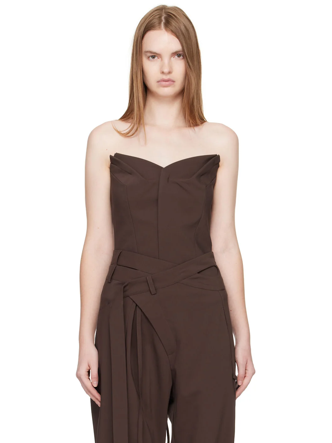 Plain-woven stretch cotton-blend corset-style top. · Boning throughout · Raw edge at straight neck · Gathering and darts at front · Zip closure at side seam · Curved hem · Full satin lining Supplier color: Dark brown 62% cotton, 33% polyester, 5% elastane. Made in Greece 252016F075000