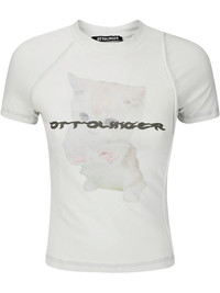 logo-print T-shirt Highlights - White - Cat print - Crew neck - Short raglan sleeves - Straight hem Imported Composition Cotton 97%, Elastane 3%