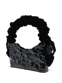 ceramic-effect shoulder bag Showcasing Berlin-based Ottolinger's avante-garde approach to design, this shoulder bag is constructed from its signature ceramic-effect recycled polyurethane that lends a unique, moulded appearance. A flat shoulder strap and ruched top handle allow for versatile styling - wear over the shoulder or handheld. Highlights - Black - Recycled polyurethane - Patent finish - Single shoulder strap - Single top handle - Ruched detailing - Embossed logo to the front - Draped detailing - Open top - Main compartment - This item is made from at least 50% recycled or upcycled materials. for recycled synthetic clothing products, we highly recommend using a microfibre-catching washing bag to ensure that no microplastics that can pollute water are released in the process. - Learn more about what makes a product conscious on our conscious criteria page Composition Outer: Rubber 100% SIZE & FIT Model measurements Height 5 ft 10 in(1.77 m) Bust/Chest 30.7 in(78 cm) Hips 35.4 in(90 cm) Waist 24.4 in(62 cm) Measurement DEPTH 2 in(5 cm) HANDLE 5.5 in(14 cm) HEIGHT 5.9 in(15 cm) WIDTH 9.4 in(24 cm)