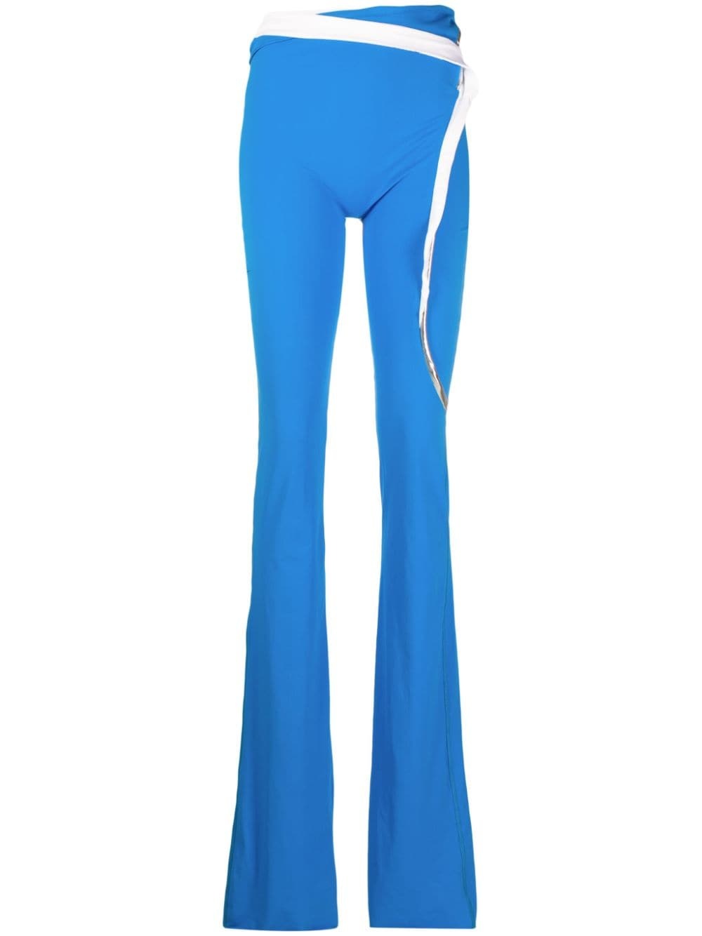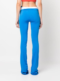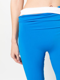 contrasting-strap flared leggings Highlights - Sky blue/white - Stretch-design - Flared - Mid-rise - Elasticated waistband - Extra-long length Imported Composition Polyamide 72%, Spandex/Elastane 28% SIZE & FIT Model measurements Height 5 ft 11 in(1.8 m) Bust/Chest 31.9 in(81 cm) Hips 35.8 in(91 cm) Waist 24.4 in(62 cm) FittingInformation Designed with a flared hem, these trousers allow for a close fit at the waist with a slim fit over the leg and widening towards the hem Particularly long in length; consider your own measurements Made from a midweight stretch fabric, this piece offers elasticity and flexibility when worn This piece fits true to size – take your usual size