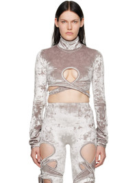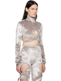 Stretch polyester velvet turtleneck. · Wrap construction · Cutout at front · Cropped hem · Extended trim at side seam · Self-tie fastening at back Supplier color: Silver 90% polyester, 10% elastane. Made in Greece 222016F099004