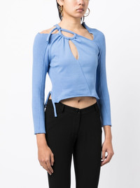 cut-out-detailing knitted top cornflower blue stretch-design fine knit cut-out detailing long sleeves cropped Imported Composition Body: Polycotton 97%, Elastane 3% SIZE & FIT Model measurements Height 5 ft 10 in(1.77 m) Bust/Chest 31.49 in(80 cm) Hips 35.43 in(90 cm) Waist 25.19 in(64 cm) FittingInformation This piece fits true to size. We recommend you get your regular size Cut for a slim fit Made with a lightweight fabric Washing instructions Machine Wash