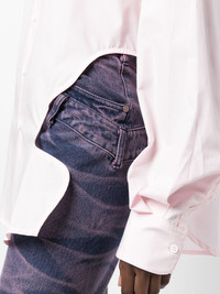 cut-out long-sleeve shirt Highlights - Pink - Cotton blend - Cut-out detailing - Classic collar - Front button fastening - Buttoned-cuff sleeves - Long sleeves - Asymmetric hem Imported Composition Cotton 60%, Polyester 40% SIZE & FIT Model measurements Height 5 ft 11 in(1.8 m) Bust/Chest 31.49 in(80 cm) Hips 36.61 in(93 cm) Waist 24.4 in(62 cm) FittingInformation Designed for a relaxed fit, this piece allows for comfort and movement when worn Made from a midweight non-stretch fabric, this piece offers minimal elasticity when worn This piece fits true to size – take your usual size Washing instructions Hand Wash