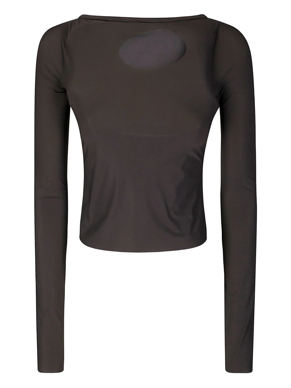 cut-out long-sleeved top Highlights - Brown - Boat neck - Long sleeves - Straight hem Imported Composition Polyamide 74%, Elastane 26% Washing instructions Read Manufacturer Guidelines