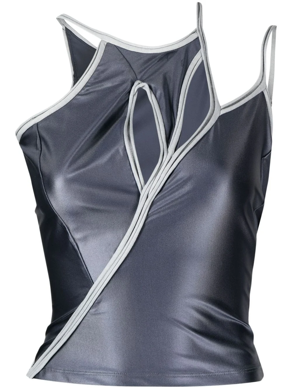 cut-out vest top Sharp asymmetric cut-outs lend this top the signature Ottolinger look of deconstructive futurism. The slim-fitting vest is presented in a shade of blue and finished with the brand's knot detailing. Imported Composition Body: Polyamide 79%, Elastane 21% SIZE & FIT Model measurements Height 5 ft 10 in(1.77 m) Bust/Chest 31.49 in(80 cm) Hips 35.43 in(90 cm) Waist 25.19 in(64 cm) Measurement LENGTH 17.71 in(45 cm) BUST 26.77 in(68 cm) FittingInformation This piece fits true to size. We recommend you get your regular size Cut for a slim fit Made with a lightweight fabric Washing instructions Machine Wash