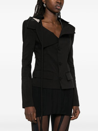 deconstructed blazer Highlights - Black - Front button fastening - Shoulder pads - Two front flap pockets - English rear vents Imported Composition Cotton 52%, Polyamide 41%, Elastane 7% SIZE & FIT Model measurements Height 5 ft 11 in(1.8 m) Bust/Chest 32.67 in(83 cm) Hips 36.22 in(92 cm) Waist 24.4 in(62 cm) FittingInformation Designed for a slim fit that sits just away from the body offering a close yet comfortable fit The internal shoulder pads offer a structured shape Made from a midweight stretch fabric, this piece offers elasticity and flexibility when worn