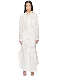 Stretch polyester- and cotton-blend broderie anglaise and poplin midi dress. · Asymmetrical paneled construction · Self-tie strap at modified spread collar · Button closure front · Button fastening and self-tie straps at waist · Button vents at hem · Buttoned barrel cuffs · Ruching and extended trim at back Supplier color: White 58% polyester, 40% cotton, 2% elastane. Made in Greece 251016F054001