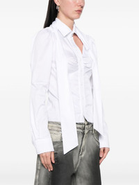 deconstructed shirt Highlights - White - Front button fastening - Buttoned cuffs - Draped detailing - Cut-out detailing Imported Composition Cotton 69%, Nylon 26%, Elastane 5% SIZE & FIT Model measurements Height 5 ft 10 in(1.78 m) Bust/Chest 33.46 in(85 cm) Hips 36.22 in(92 cm) Waist 23.22 in(59 cm) FittingInformation Designed for a slim fit that sits just away from the body offering a close yet comfortable fit Made from a midweight stretch fabric, this piece offers elasticity and flexibility when worn
