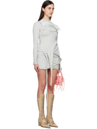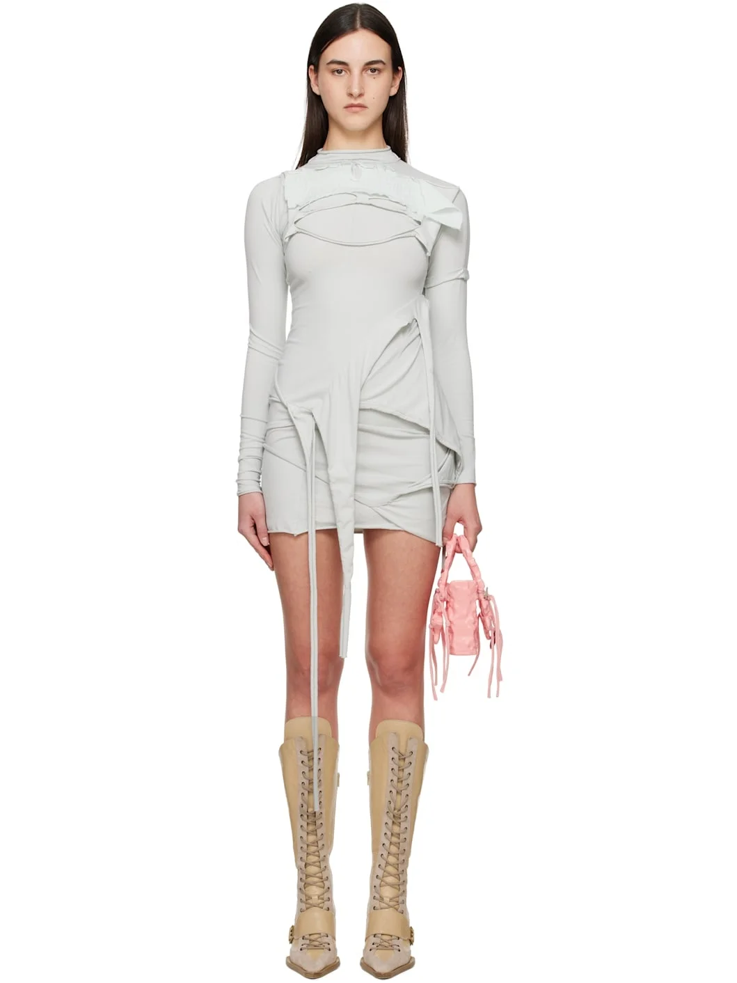 Stretch organic cotton jersey minidress. Rolled edges, draping, and extended trim throughout. · Asymmetrical construction · Round neck · Distressed logo applique at front · Cutout at shoulder · Dropped shoulder Supplier color: Grey 97% organic cotton, 3% elastane. Made in Greece 251016F052001