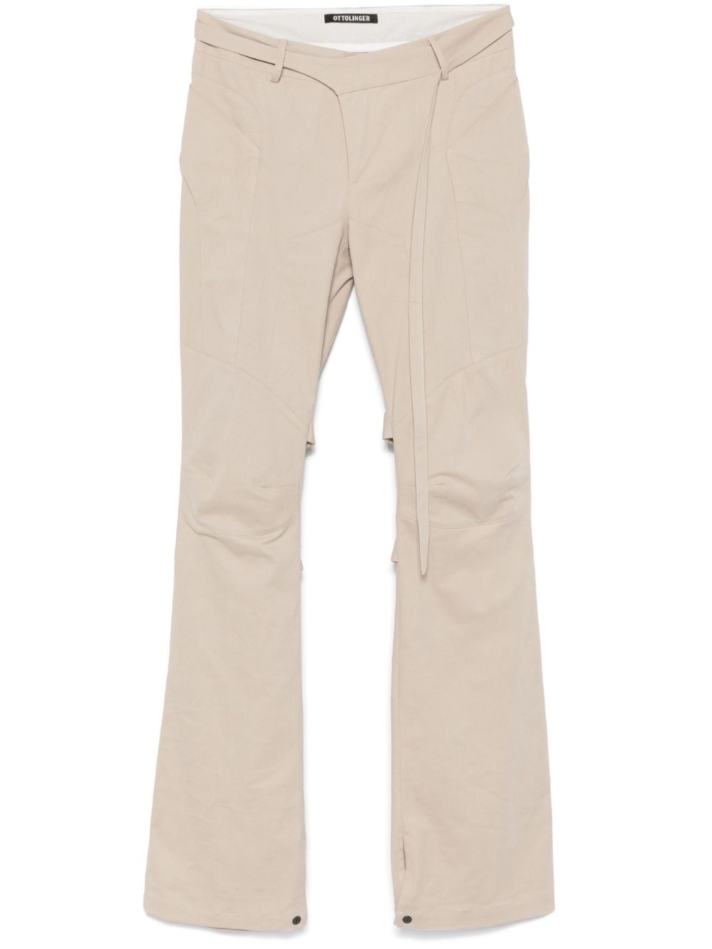 Deconstructed trousers Highlights - Beige - Cotton blend - Twill weave - Deconstructed design - Panelled design - Concealed front fastening - Belt loops - Tied waist - Mid-rise - Two side slit pockets - Two rear patch pockets - Strap detailing - Slim cut - Flared hem Imported Composition Cotton 98%, Elastodiene 2% SIZE & FIT Model measurements Height 5 ft 11 in(1.8 m) Bust/Chest 32.28 in(82 cm) Hips 35.82 in(91 cm) Waist 23.62 in(60 cm) FittingInformation Designed with a flared hem, these trousers allow for a close fit at the waist with a slim fit over the leg and widening towards the hem Made from a midweight stretch fabric, this piece offers elasticity and flexibility when worn