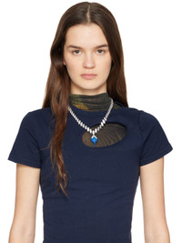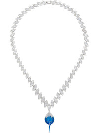 Handcrafted cup chain necklace in silver-tone metal. · Prong-set crystals at length · Rubber-dipped pendant with pave-set crystals · Box-clasp fastening · L22" Supplier color: Royal Blue Metal, glass, polyurethane. Made in Greece 261016F023001