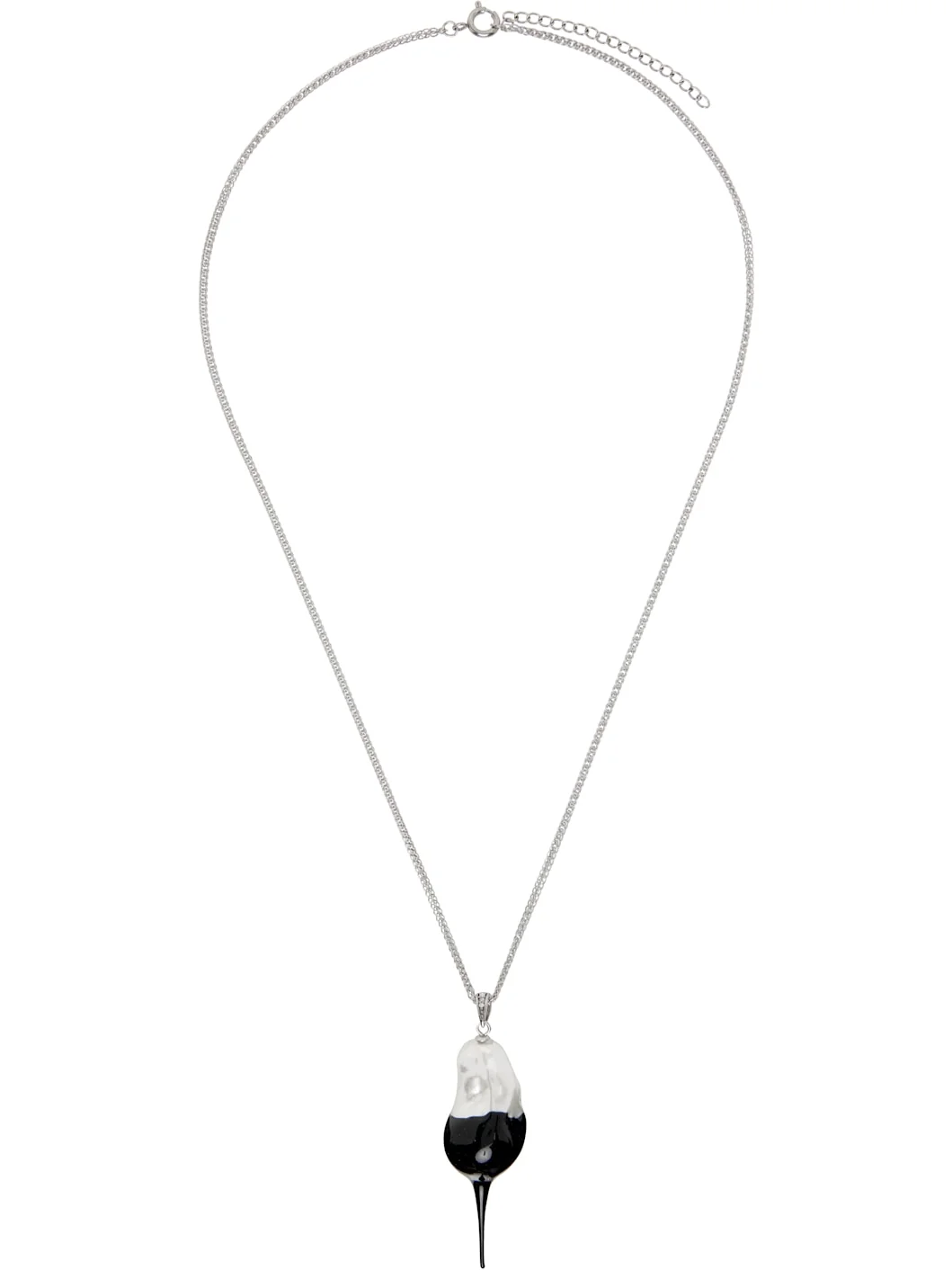 Foxtail chain necklace in silver tone. · Rubber-dipped faux-pearl pendant · Adjustable spring-ring fastening · L21.5" Supplier color: Silver/Black Metal, rubber, plastic. Made in Greece 252016F023003