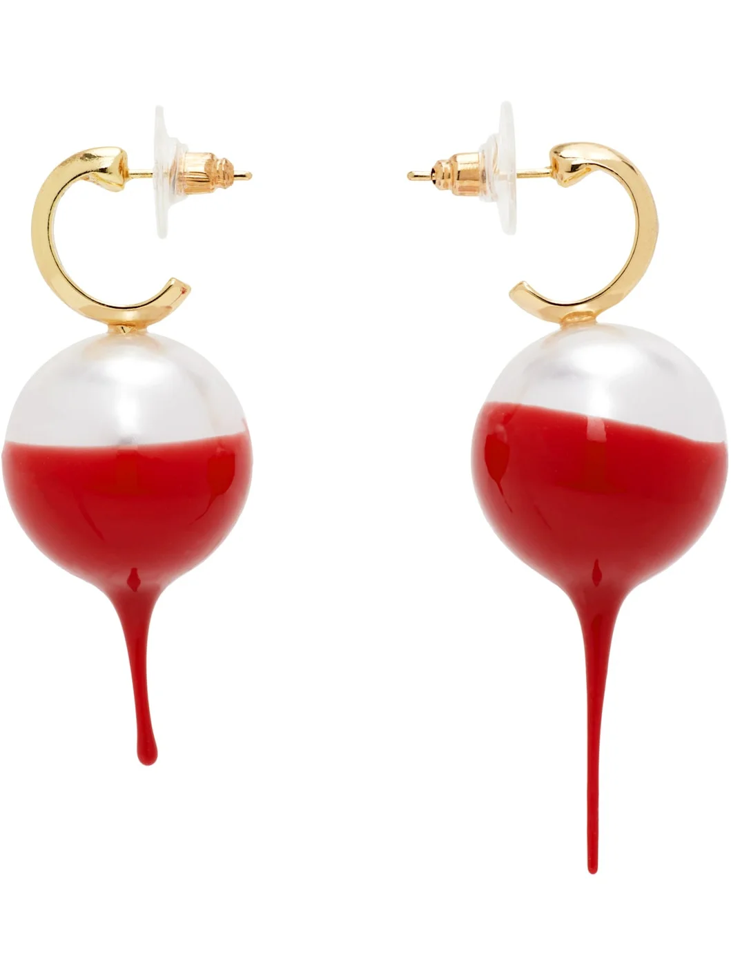 Pair of drop earrings in gold-tone. · Rubber-dipped faux-pearl charm · Post-stud fastening · H2" x W0.75" Each item is unique. Please note finishings may vary. Supplier color: Gold/Red Metal, rubber, plastic. Made in Greece 252016F022001