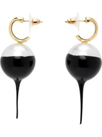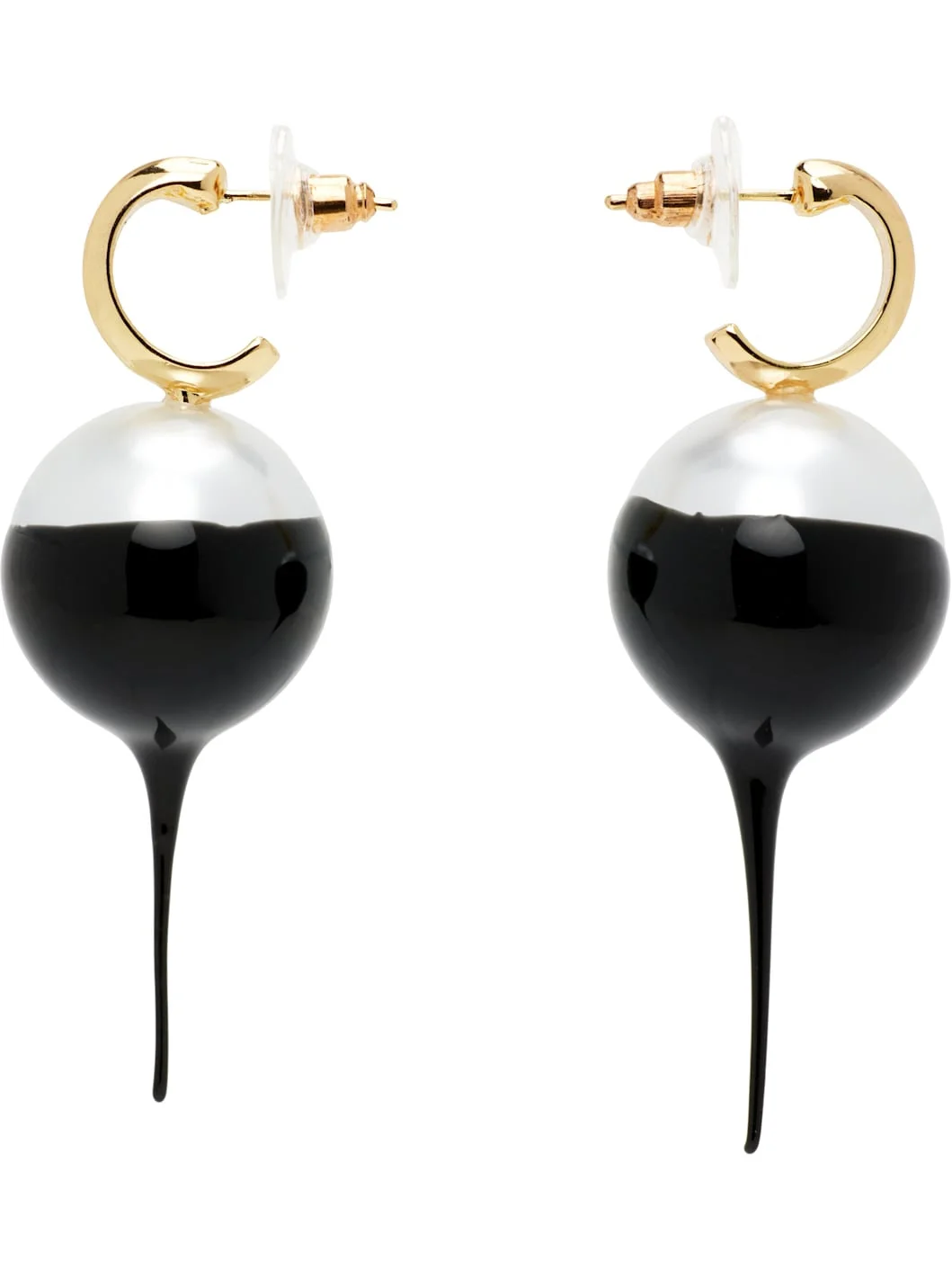 Pair of open hoop earrings in gold tone. · Rubber-dipped faux-pearl charm · Post-stud fastening · H2.25" x W0.75" Each item is unique. Please note finishings may vary. Supplier color: Gold/Black Metal, rubber. Made in Greece 252016F022002