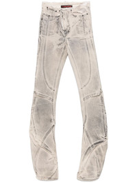 draped raw-cut jeans Highlights - Cream white/black - Cotton blend - Coated finish - Faded effect - Raw-cut edge - Draped detailing - Asymmetric hook and zip fly fastening - Mid-rise - Classic five pockets - Skinny cut Imported Composition Cotton 77%, Rubber 14%, Recycled Polyester 7%, Spandex/Elastane 2% SIZE & FIT Model measurements Height 5 ft 10 in(1.77 m) Bust/Chest 32.28 in(82 cm) Hips 35.03 in(89 cm) Waist 25.19 in(64 cm) FittingInformation Designed with a bootcut leg, these jeans allow for a close fit at the waist and with an unrestricted, comfortable fit and additional room at the calves Constructed from stretch denim, this piece offers a stretch fit with durability
