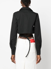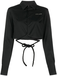 logo-lettering cropped shirt Highlights - Black - Cotton blend - Silver-tone logo lettering - Self-tie fastening - Straight-point collar - Front button fastening - Long sleeves - Buttoned cuffs - Straight hem - Cropped Imported Composition Cotton 60%, Polyamide 36%, Elastane 4% SIZE & FIT Model measurements Height 5 ft 10 in(1.78 m) Bust/Chest 31.49 in(80 cm) Hips 37 in(94 cm) Waist 23.62 in(60 cm) FittingInformation Designed to be unstructured, offering a loose fit throughout The tie fastening gives an adaptable and personalised fit Made from a midweight stretch fabric, this piece offers elasticity and flexibility when worn This piece fits true to size – take your usual size Washing instructions Machine Wash