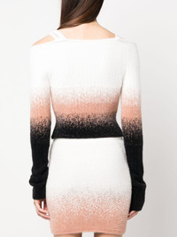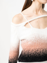 gradiebt-effect off-shoulder knitted jumper Highlights - White/black/rose pink - Knitted construction - Gradient effect - Brushed effect - Off-shoulder - Spaghetti straps - Long sleeves - Straight hem Imported Composition Polyamide 100% SIZE & FIT Model measurements Height 5 ft 11 in(1.8 m) Bust/Chest 31.49 in(80 cm) Hips 36.22 in(92 cm) Waist 25.59 in(65 cm) FittingInformation Designed for a close fit throughout Made with a midweight knit, this piece offers some stretch This piece fits true to size – take your usual size Washing instructions Hand Wash