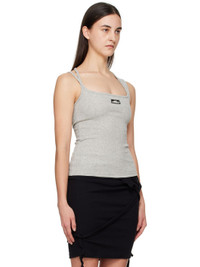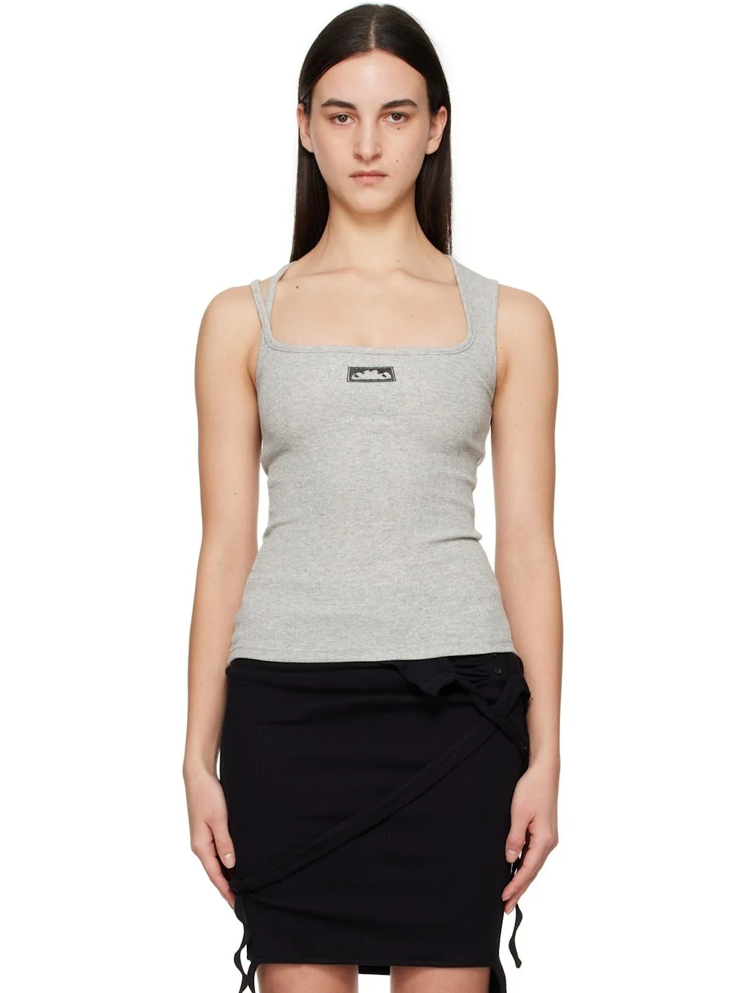 Stretch cotton-blend ribbed jersey tank top. Metallic thread detailing throughout. · Square neck · Logo at chest · Cutout at shoulder Supplier color: Silver melange 87% cotton, 11% lurex, 2% elastane. Made in Greece 251016F111005