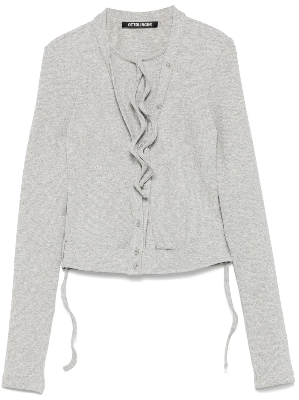 double-closure cardigan Highlights - Light grey - Front button fastening - Crew neck - Long sleeves Imported Composition Cotton 87%, Lurex 11%, Elastane 2% SIZE & FIT Model measurements Height 5 ft 11 in(1.8 m) Bust/Chest 32.67 in(83 cm) Hips 36.22 in(92 cm) Waist 24.4 in(62 cm) Measurement SLEEVE LENGTH 25.98 in(66 cm) LENGTH 19.68 in(50 cm) BUST 29.13 in(74 cm) Shoulder Width 11.81 in(30 cm) FittingInformation Designed for a slim fit that sits just away from the body offering a close yet comfortable fit Made with a midweight knit, this piece offers some stretch Washing instructions Machine Wash