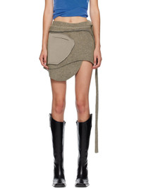 Stretch melton and bonded jersey miniskirt. · Raw edges throughout · Wrap construction · Single-pocket styling · Asymmetrical hem · Adjustable button strap fastening at side seam Supplier color: Stone 60% polyester, 25% acrylic, 12% virgin wool, 3% elastane. Made in Greece 252016F090002