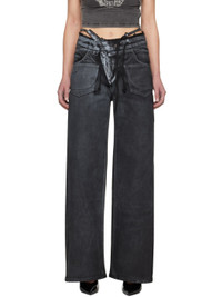 Handcrafted stretch recycled- and reused cotton-blend denim jeans. Trompe l'œil graphic printed throughout. · Frayed edge at layered waistband · Drawstring and strap at waistband · Four-pocket styling · Offset zip-fly · Rubberized logo patch at back waistband · Contrast stitching in yellow Supplier color: Black/White paint 40% cotton, 30% recycled polyester, 22% recycled cotton, 5% reused cotton, 3% elastane. Made in Turkey 241016F069005