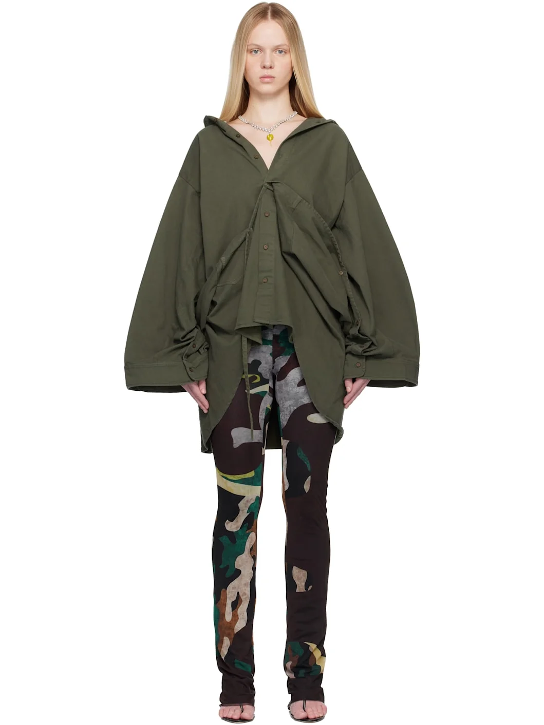 Stretch cotton twill overshirt. Converts to cape-style jacket. · Jersey hood · Button closure · Barrel cuffs · Patch pocket at shirttail hem · Unlined Supplier color: Khaki 98% cotton, 2% elastane. Made in Greece 261016F063001