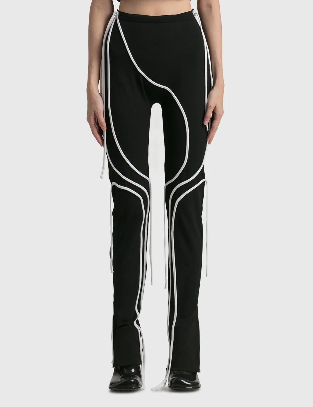 - Ottolinger - Knit Strappy Leggings - Viscose-blend jersey leggings - Slim fit - Mid-rise - Contrast piping - Extended trim with strap detailing - Elasticated waistband - Zip fastening at cuffs - Color: Black - Material: 75% Viscose, 25% Nylon - See more Leggings and Clothing SIZING - Model wears size S - Model measures: Height 170cm, Chest 29”/75cm, Waist 22”/57cm, Hip 33”/86cm
