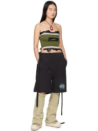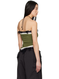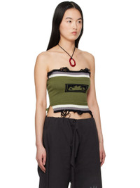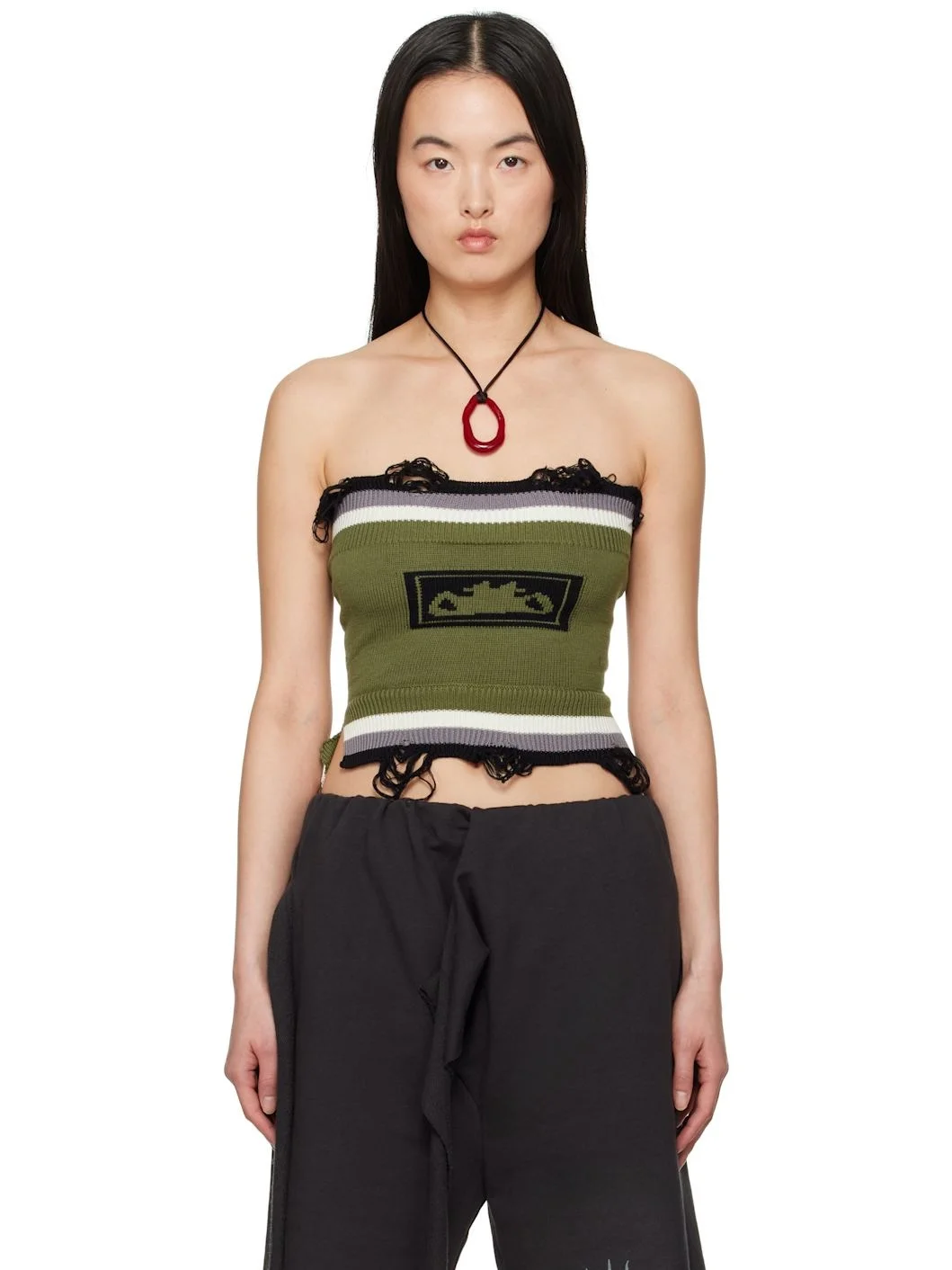 Knit organic cotton tube top. - Distressing and laddering at straight neck and hem - Jacquard graphic at front - Notches at cropped hem Supplier color: Green-white