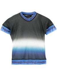 logo-trim ombre T-shirt Highlights - Black/blue/white - Recycled polyester - Stretch-design - Logo trim - Ombre print - Semi-sheer construction - Round neck - Short sleeves - Slim cut - Straight hem Imported Composition Recycled Polyester 90%, Spandex/Elastane 10% SIZE & FIT Model measurements Height 5 ft 9 in(1.76 m) Bust/Chest 33.07 in(84 cm) Hips 38.58 in(98 cm) Waist 24.8 in(63 cm) FittingInformation This piece fits true to size. We recommend you get your regular size Cut for a slim fit Made with a lightweight stretch fabric Washing instructions Hand Wash