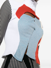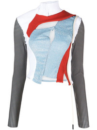 metallic-effect detail panelled top Highlights - Blue/white/red - Check print - Panelled design - High neck - Contrasting-fabric sleeves - Asymmetric body - Long sleeves - Cut-out detailing - Hook fastening - Metallic effect panel - Straight hem Imported Composition Polyester 32%, Polyamide 23%, Cotton 17%, Viscose 14%, Metallic Fibre 8%, Spandex/Elastane 6% SIZE & FIT Model measurements Height 5 ft 10 in(1.77 m) Bust/Chest 34.64 in(88 cm) Hips 35.43 in(90 cm) Waist 24.8 in(63 cm) FittingInformation Designed for a close fit throughout Made from a midweight fabric This piece fits true to size – take your usual size Washing instructions Dry Clean Only