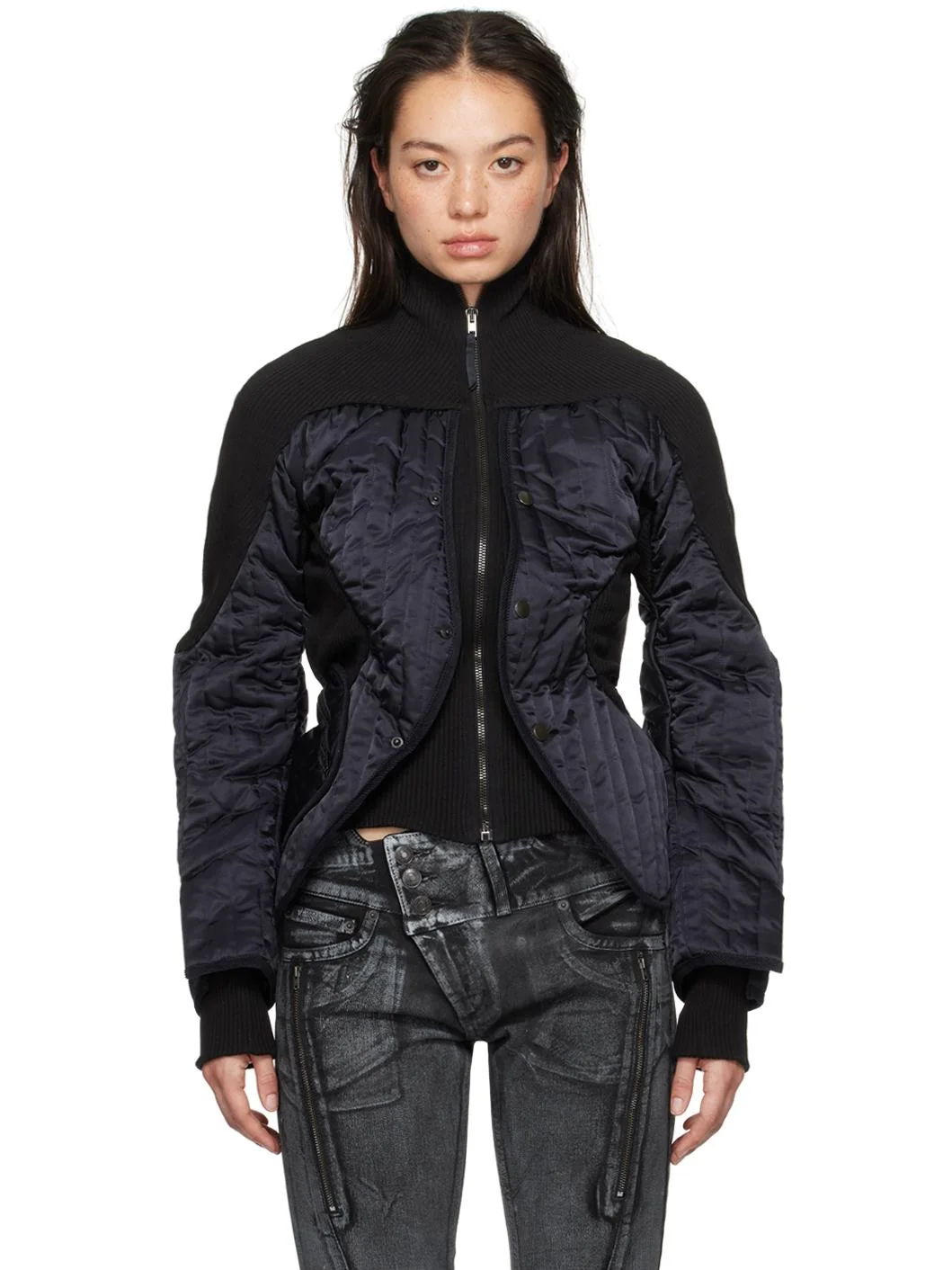 Insulated quilted polyester taffeta and rib-knit polyacrylic jacket. · Layered construction · Turtleneck · Zip closure · Press-stud fastenings at front · Zip pocket Supplier color: Blue/Black