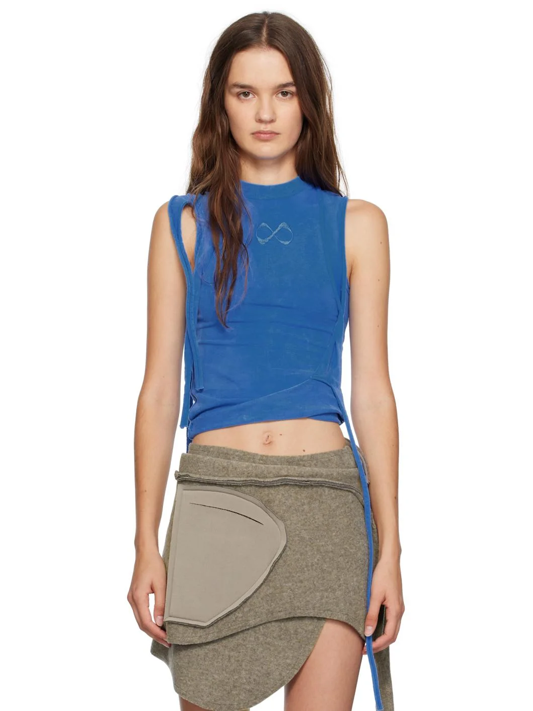 Stretch organic cotton jersey tank top. · Extended trim with raw edges throughout · Rib-knit crewneck · Logo embroidered at chest · Raw edge at armscyes Supplier color: Surf blue 97% organic cotton, 3% elastane. Made in Greece 252016F111000
