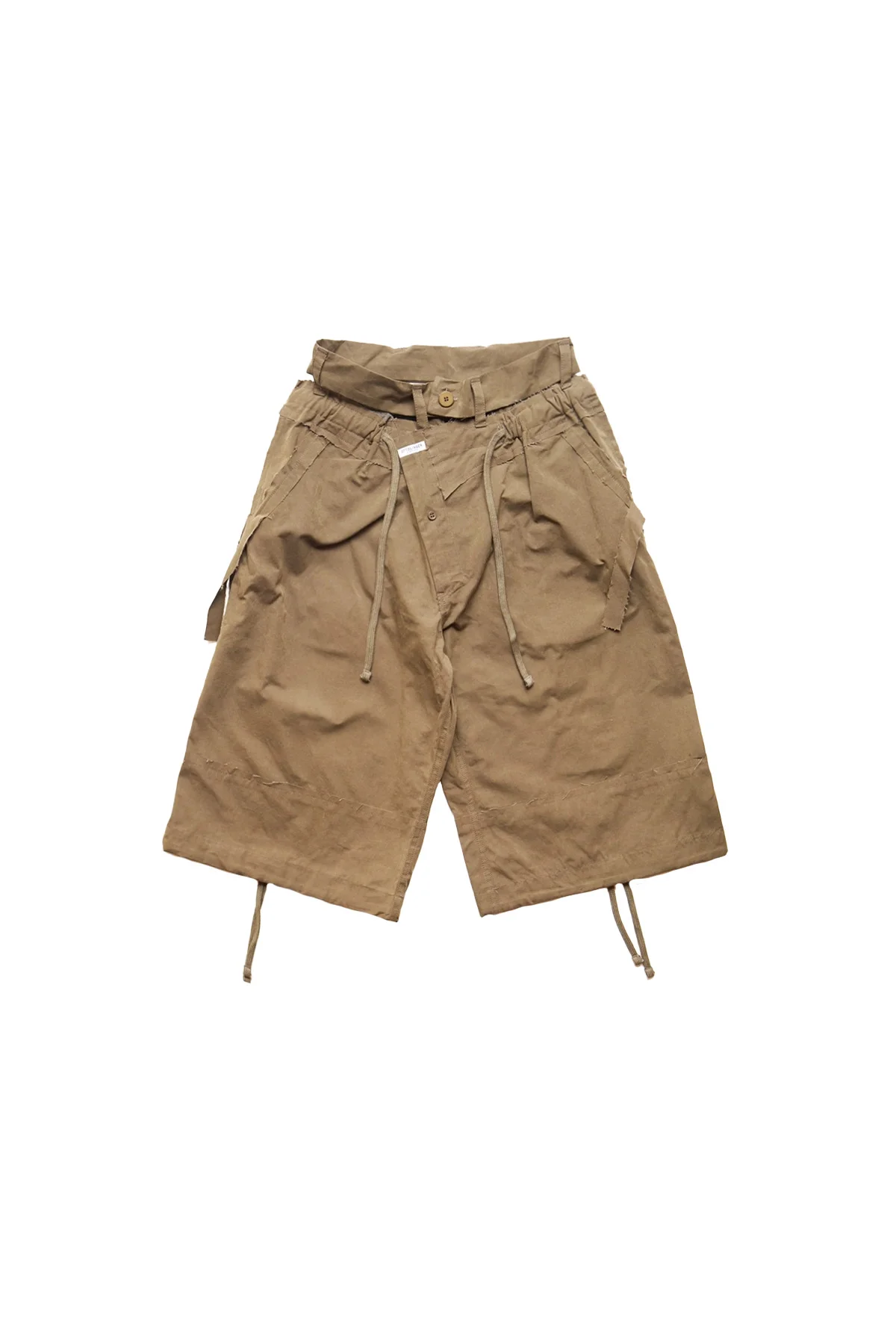 The Ottolinger Baggy Cargo Shorts in stretch broadcloth with raw edges throughout, a cut-out suspended waistband, drawstring elasticized waistband, four pocket styling, offset zip fly, logo patch at front, drawstring at the hem for alternate styling, and cargo pockets at the outseams. DETAILS - Stretch broadcloth - Raw edges throughout - Cut-out at waistband - Drawstring at elasticized waistband - Trim with button fastening at waistband - Four-pocket styling - Offset zip fly - Logo patch at front - Drawstring at hem - Cargo pocket at outseams - Logo flag at back Sizing: - True to size Product codes: - SKU: ESSX/OTT/SS25/10620040601/green/M - UPC: 4255622746218