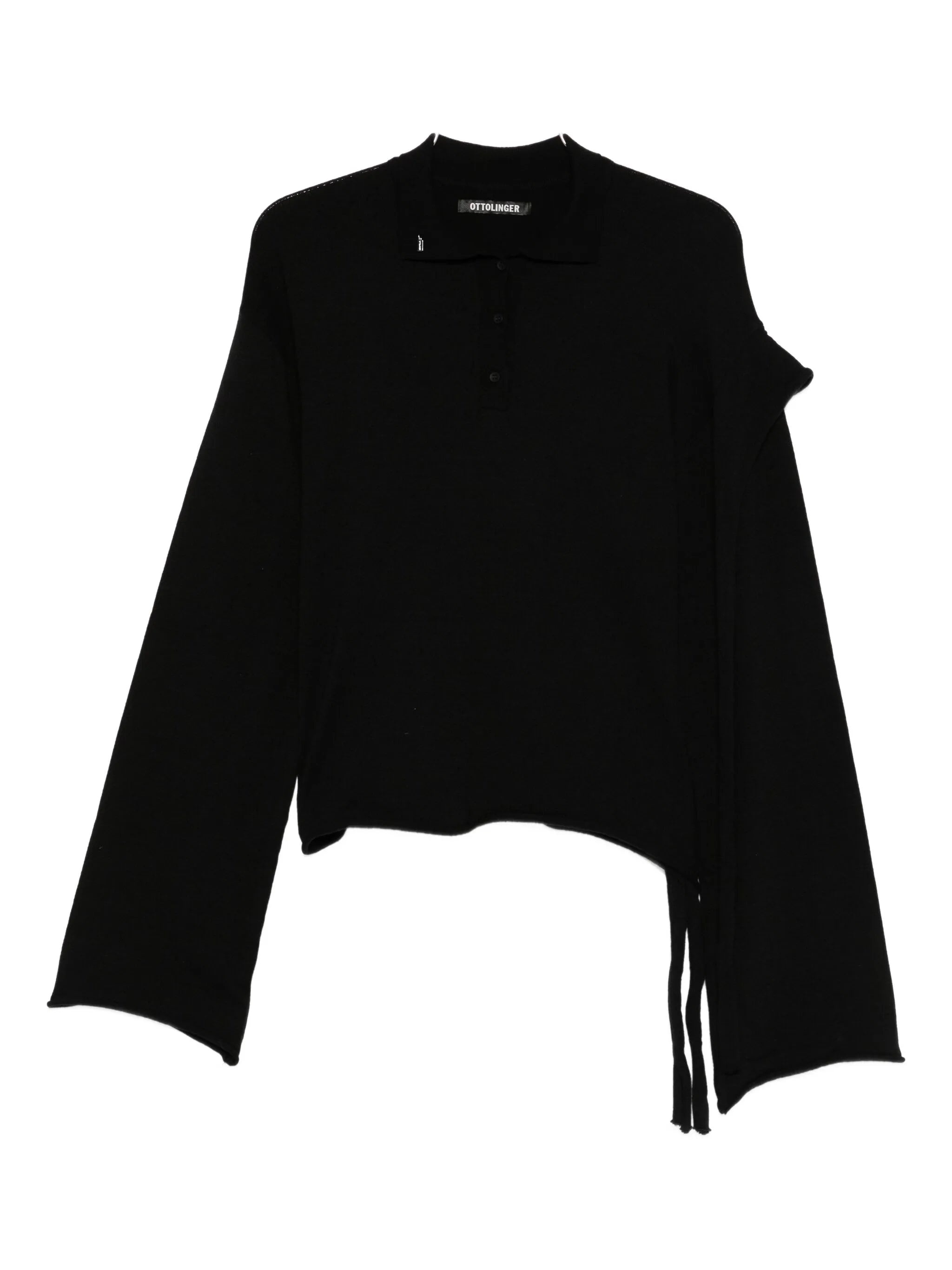 black asymmetric hem button fastening long sleeves wide sleeves raw-edge detailing - Color: BLACK - Made in: Greece - Designer Style ID: 10710620701 BLK Composition and care Polyamide: 22.0%, Polyester: 28.0%, Viscose: 50.0%