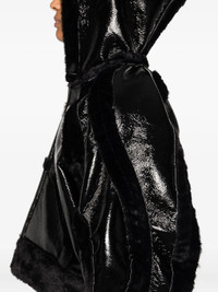 black faux fur trim zip front fastening hooded neckline long sleeves - Color: BLACK - Made in: Greece - Designer Style ID: 10970240901 BLK Composition and care Cotton: 2.0%, Polyester: 82.0%, Polyurethane: 10.0%, Viscose: 1.0%, Other Fibres: 5.0%