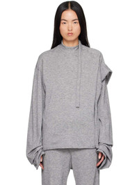 Oversized viscose-blend jersey sweater. Rolled edges throughout. · Asymmetrical construction · Extended trim at mock neck and shoulder · Dropped shoulders Supplier color: Grey