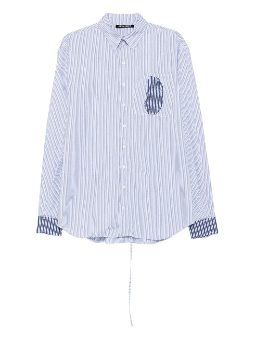 striped patch-pocket shirt Highlights - Light blue - Navy blue stripes - Patch pocket - Drawstring hem - Long sleeves - Button fastening Imported Composition Cotton 95%, Polyamide 4%, Elastane 1% SIZE & FIT Model measurements Height 5 ft 10 in(1.78 m) Bust/Chest 33.85 in(86 cm) Hips 36.61 in(93 cm) Waist 26.77 in(68 cm) Washing instructions Machine Wash
