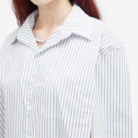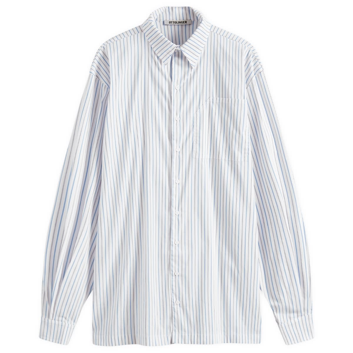 Initially known for its sci-fi club wear, Ottolinger has grown to achieve mainstream success while maintaining its avant-garde roots. Taking a classic shirt silhouette, this cotton blend piece has been exaggerated for comfort and a confidence boost. The striped pattern elongates your shape while simultaneously never going out of style. - 74% Cotton, 23% Polyamide, 3% Elastane - V-Neck - Spread Collar - Chest Patch Pocket - Short Side Slits - Front Button Fastening - Dry Clean Only