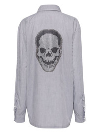 rhinestone-embellished striped shirt Highlights - Light grey/white - Cotton blend - Vertical stripe pattern - Skull applique - Rhinestone embellishment - Straight-point collar - Front button fastening - Long sleeves - Buttoned cuffs - Straight hem Imported Composition Cotton 60%, Polyester 40% Washing instructions Hand Wash