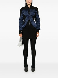 panelled jacket Highlights - Blue/black - Ribbed panelling - Quilted panels - Front press-stud and zip fastening - Mock neck - Long sleeves - Split cuffs - Ribbed cuffs - Mini logo tag - Side zip-fastening pocket - Unlined - Asymmetric hem Imported Composition Lining: Polyester 100% Outer: Polyamide 50%, Polyester 50% SIZE & FIT Model measurements Height 5 ft 11 in(1.8 m) Bust/Chest 33.07 in(84 cm) Hips 37.4 in(95 cm) Waist 25.19 in(64 cm) FittingInformation Designed for a slim fit that sits just away from the body offering a close yet comfortable fit Made from a midweight fabric