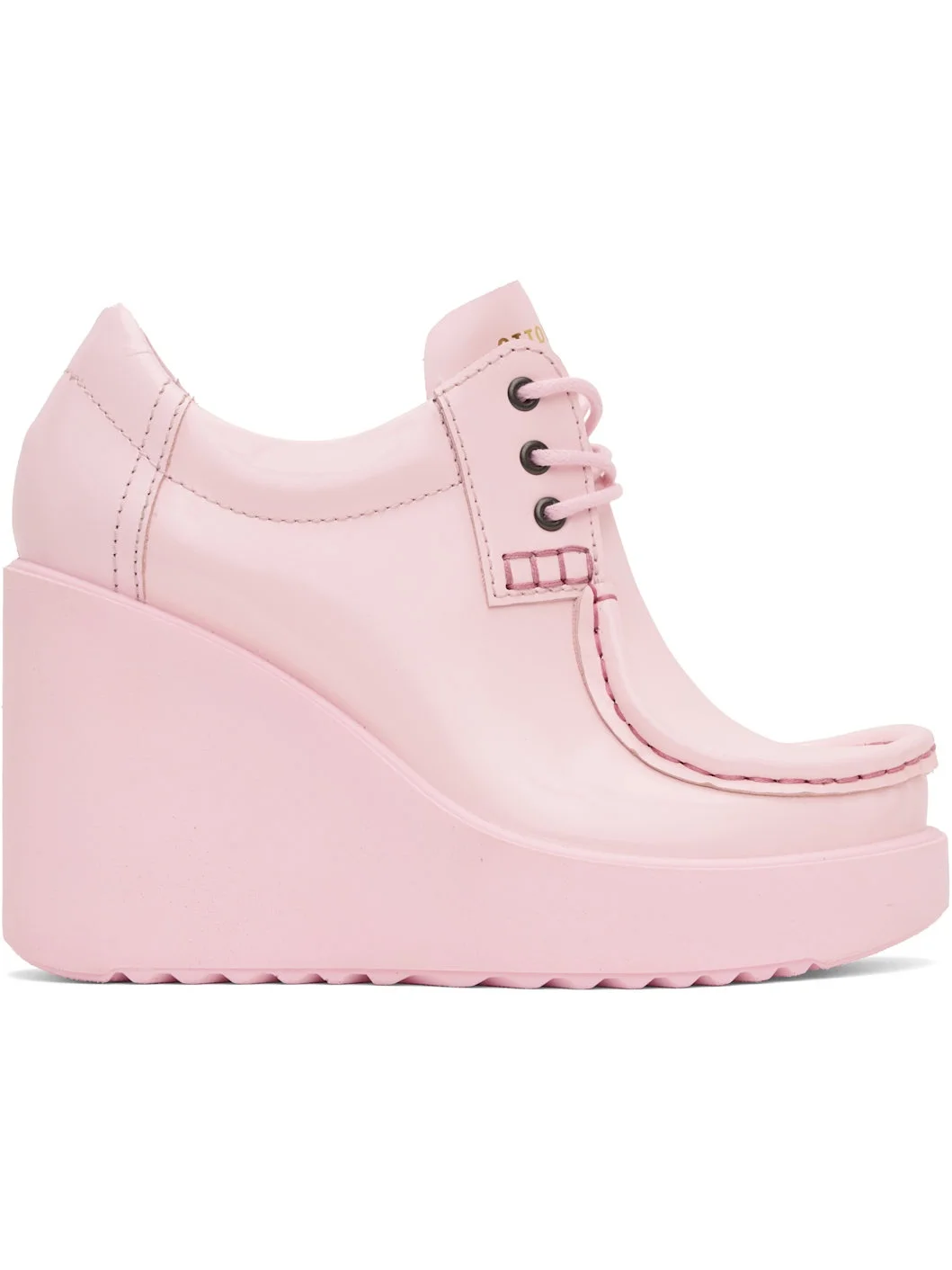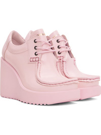 Patent leather heels in pink. · Moc toe · Lace-up closure · Logo stamp at tongue · Padded collar · Suede and buffed leather lining · Foam rubber platform midsole and wedge heel · Treaded rubber sole · Platform: H1" · Heel: H3.5" Part of the Ottolinger x ECCO.kollektive collaboration. Supplier color: Barley pink Upper: leather. Sole: rubber. Made in Portugal 251016F122002