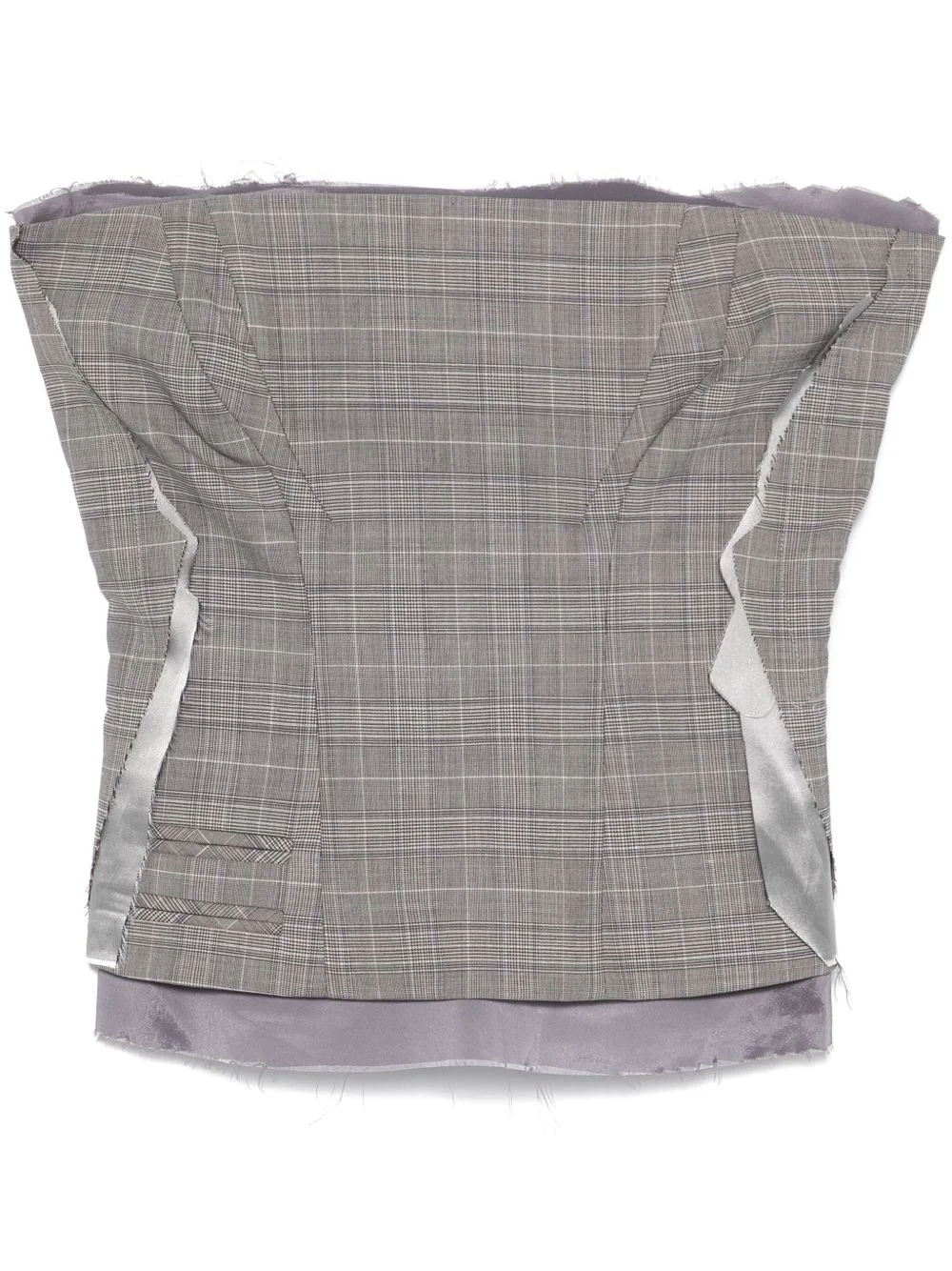 plaid-check corset Highlights - Dark grey - Side zip fastening - Layered details - Raw-cut edge - Strapless Imported Composition Outer: Polyester 54%, Wool 44%, Elastodiene 2% Lining: Polyester 47%, Acetate 26%, Viscose 24%, Elastodiene 3% SIZE & FIT Model measurements Height 5 ft 10 in(1.78 m) Bust/Chest 33.46 in(85 cm) Hips 36.22 in(92 cm) Waist 23.22 in(59 cm) FittingInformation Designed for a close fit throughout Made from a midweight stretch fabric, this piece offers elasticity and flexibility when worn